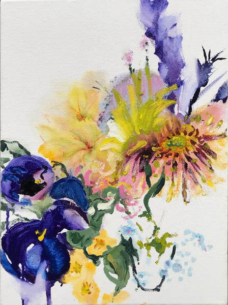 Plants and flower are a prominent features in my work from the fresh blooms and leaves they often stay around in the Studio long after they have faded. They become features and motifs in my larger studio paintings, but it always starts with an exploration in paint.Paintings made from a collection of spring garden plants, wild flowers and a few florist stems.